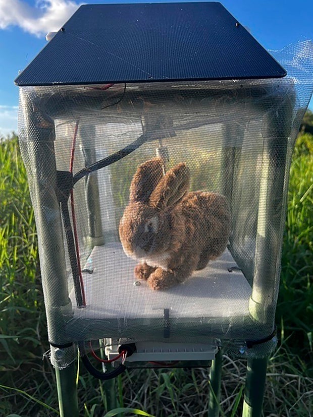 The robots are simple toy rabbits, but retrofitted to emit heat, a smell and to make natural movements to appear like any other regular rabbit. “They look like a real rabbit,” Kirkland said. They are solar powered and can be switched on and off remotely. They are placed in small pens monitored by a video camera that sends out a signal when a python is nearby.