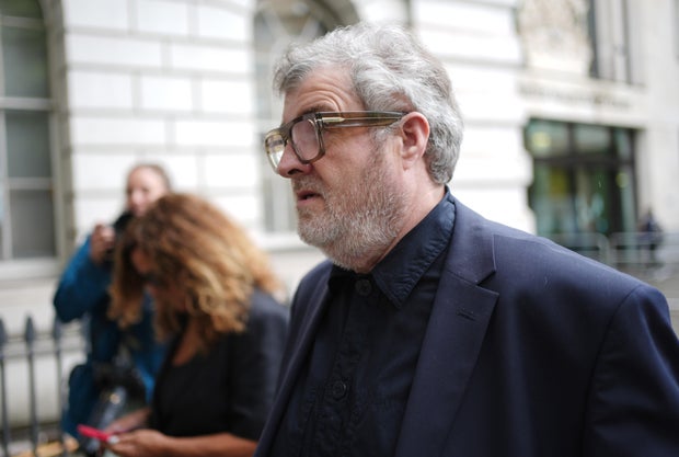 Paul Gallagher, 59, is seen on August 27, 2025 leaving Westminster Magistrates’ Court in London, where he was charged with rape.